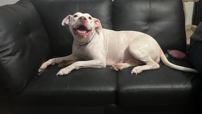 Mavis is understandably afraid of humans until she knows them super well. She needs to be paired up with a confident dog that she can watch and learn from regarding dog/human relationships.