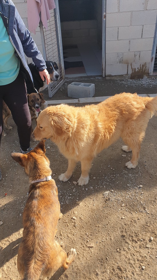 Great with people and dogs. Is neutered, chipped, vaccinated, healthy and has such wonderful, gentle natures, and is obedient, loving and all-round good dog.