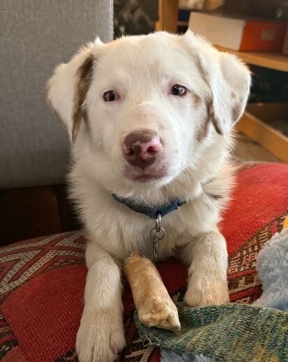 Like many young pups, Binx is still working on crate training and can experience some separation anxiety. She and her foster family are actively helping her build comfort and confidence when alone, and she’s making progress with patience, consistency, and love.