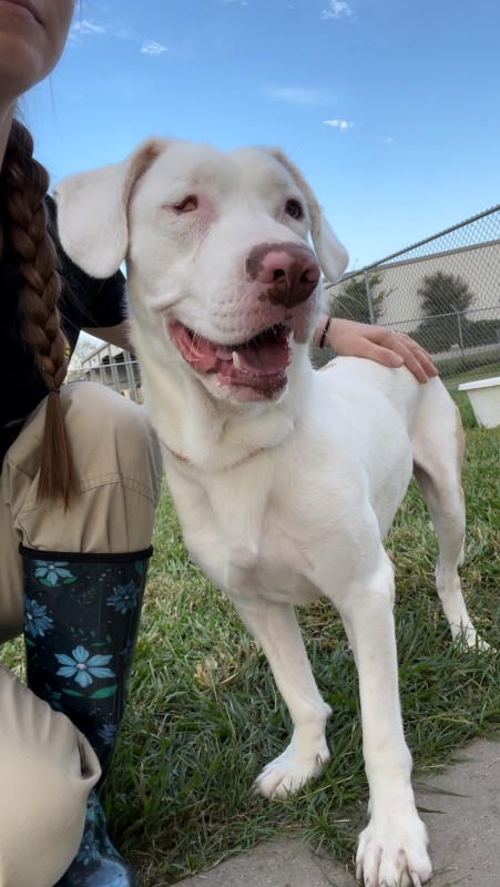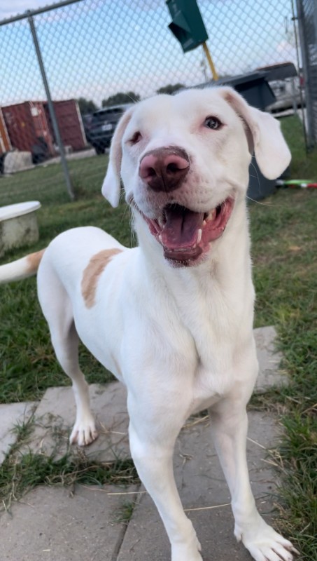 Dès le moment où vous vous rencontrez, vous verrez son grand cœur briller. Il ne vous entend peut-être pas, mais cela vous accueillera avec des aboiements enthousiastes et une queue de secouer. Il est facile de scéréter sur la puce et de marcher magnifiquement sans tirer, ce qui le rend heureux de le retirer. Sur le parc de jeu, il erre avec confiance, explore seul et progresse parfois vers un petit agrandissement heureux.
