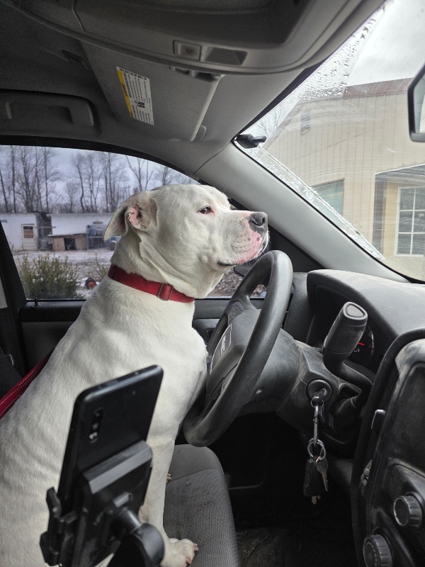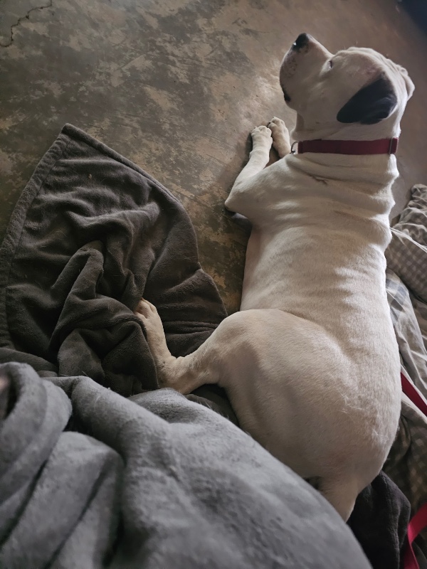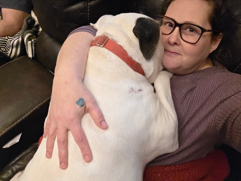 Israel is about 4 years old, neutered, up to date on vaccines, crate trained, and fully potty trained. He is deaf but that doesn’t slow him down one bit. This boy knows several hand signals like sit, outside, “I love you,” and good boy — and he absolutely thrives on connection with his person. He is the biggest snuggle bud and lover ever!