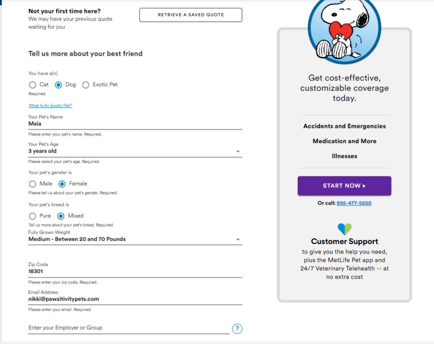 Honestly, the price varies so much depending on your dog’s breed, adult weight range, and age. So, the best way to figure out you cost is to just fill out the form. It takes less than a minute. In fact, it took me less than 5 minutes to pull quotes for all of the above.