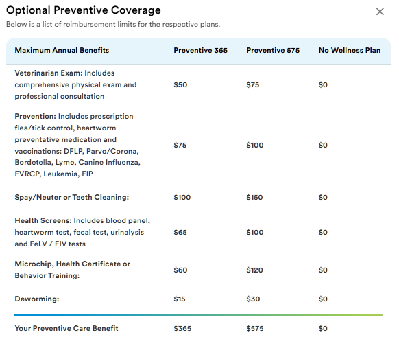 Still a good chunk more than the recommended plan, but not terrible. The biggest jump comes from adding on the Preventative 365 option. Before that, it was about $58. Let’s look at that in a bit more detail.
