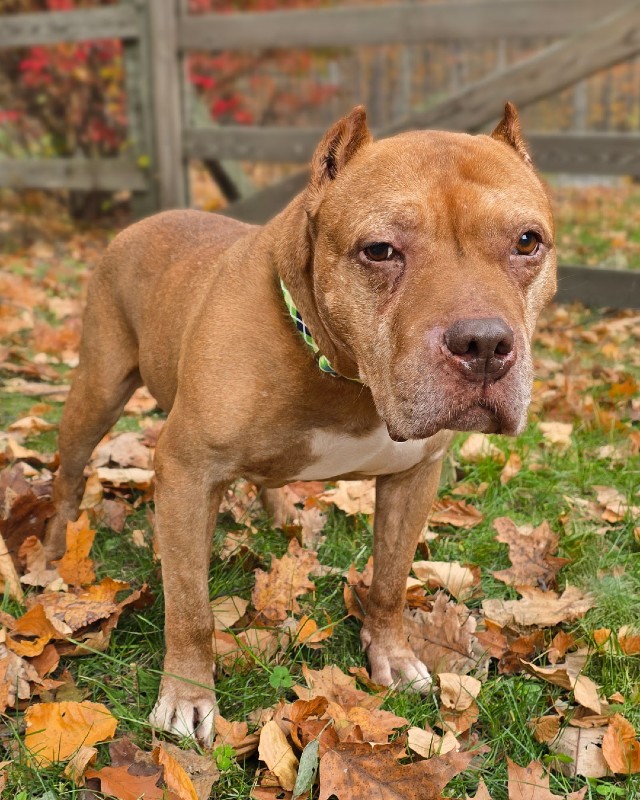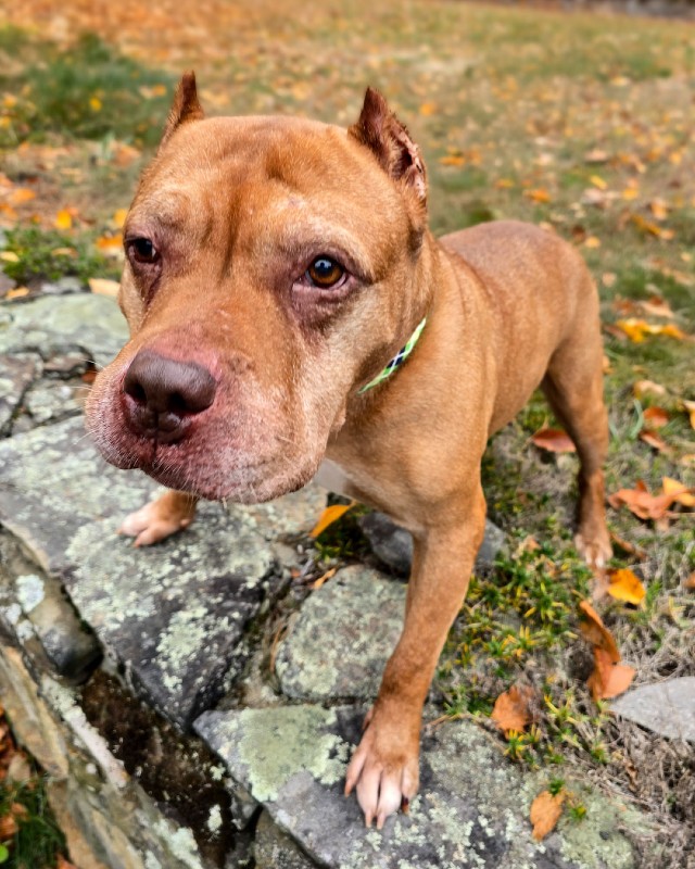 Mr. Wonderful, like his namesake, is one-of-kind, exciting, unique, and unforgettable. He has personality to spare but is really just a super easy dog who loves to be close and nap in the softest spot in the house. He is a shrewd investor (of love!), a multi-millionaire (of snores!), and a terrific fund manager (of snacks!). He is a mature and no-nonsense man who knows what he wants (love, naps and food) and isn’t afraid to ask for it. In fact, he is a connoisseur of fine foods and always appreciates a great meal. Mr. Wonderful has uncanny charisma, and like any entrepreneur, is just looking for the American dream…a comfortable and safe home to call his own, and a family to love him for all his days. While this sweet bully previously lived with a dog, and was reported to be dog-friendly, we think he would be happiest as the center of attention, due to the fact he is completely deaf and has limited vision, likely from a previous injury to one of his eyes. Other dogs and cats coming up to him quickly had made him nervous in his foster home and we can’t blame him.