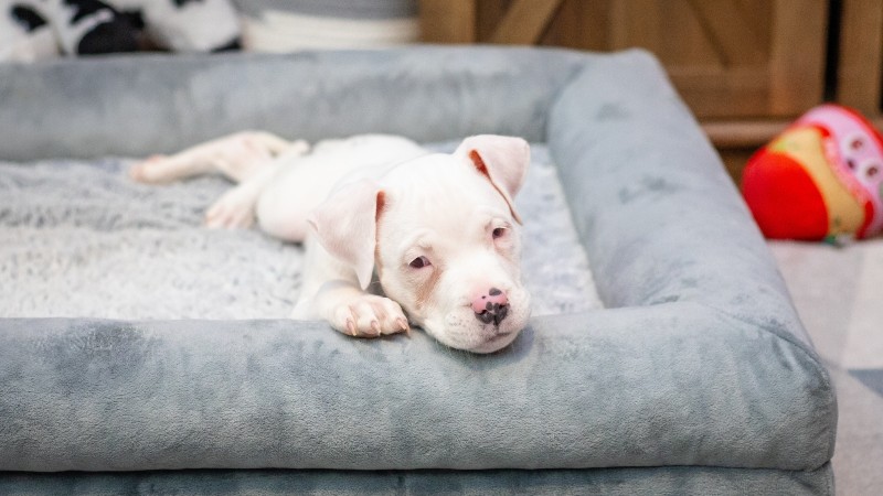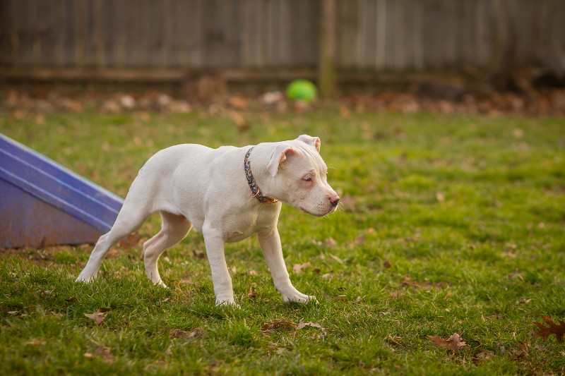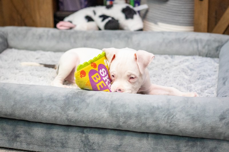 From her rescue advocate: Nail Polish is a deaf and mostly-blind American Bully. She is sweet, snuggly, and an exuberant playmate! Poli (short for Nail Polish) is hilarious and promises to keep her new family laughing. She can see well enough to track movement but would do best with touch training. She is doing well with learning to walk on a leash, and does well in her crate, and sleeps through the night. She would do best in a home with a playmate, or someone she can roughhouse with. She also loves to play tug and do zoomies.