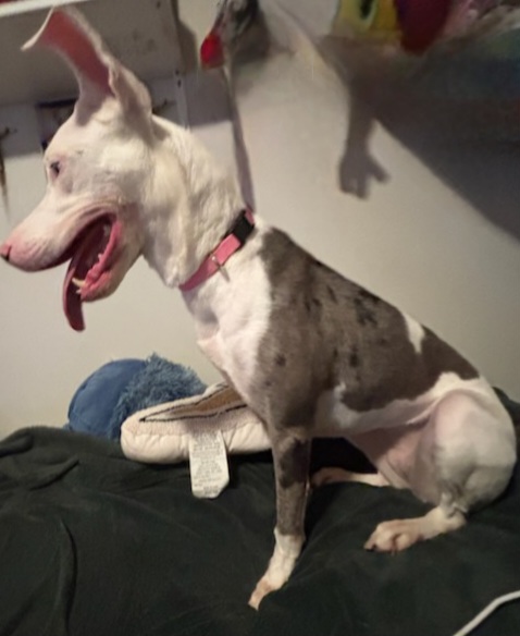Elle est géniale avec tous les animaux ! Nous ne sommes pas beaucoup à la maison, donc elle passe beaucoup de temps seule et nous recherchons un foyer aimant pour toujours avec quelqu’un qui peut passer du temps de qualité avec elle.
