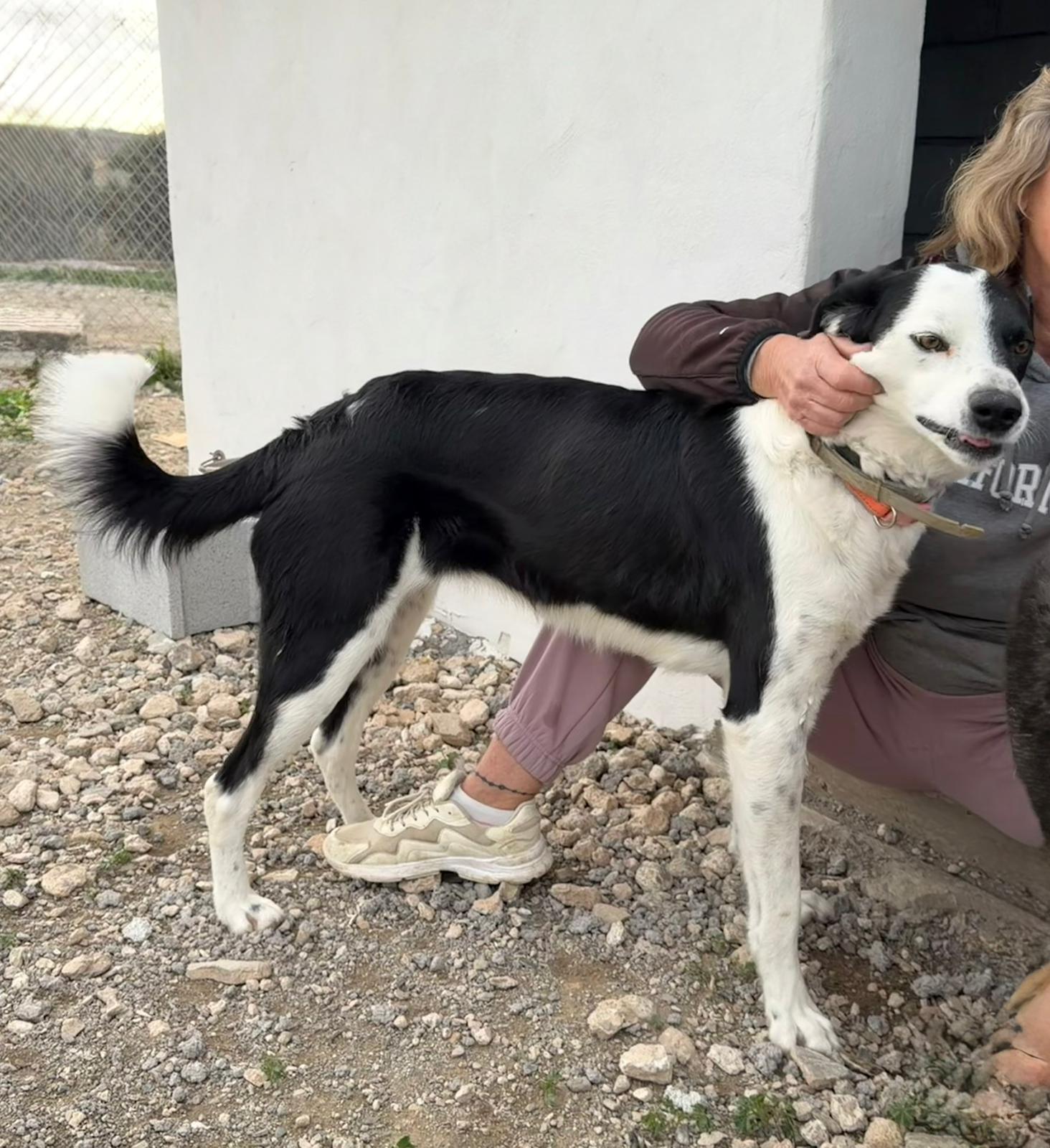 She has a soft black and white short coat, and she is a very loving, affectionate and playful girl with her pal Max, who sleeps in her kennel. Shadow is good with all the other dogs once introduced, but can be a bit of a slow burner to begin with, until she knows she is safe.