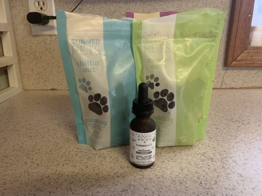 Sunmed sent me all 4 of their CBD products for dogs. We’ve tried all except the one for allergies so far. I’m saving that for closer to Freya’s peak allergy season.