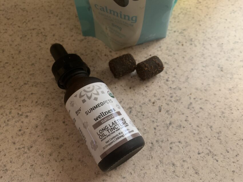 That’s where the tincture comes in crazy handy. We mix it into a small amount of cat food when she’s too worked up to take a chew, and it works every time.