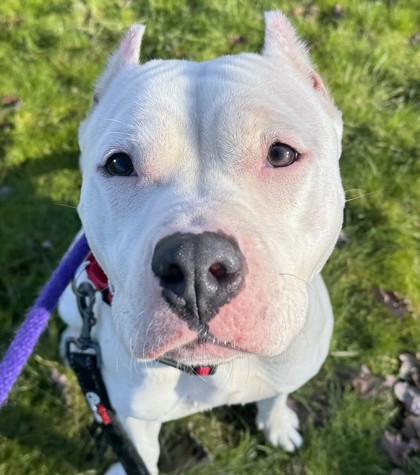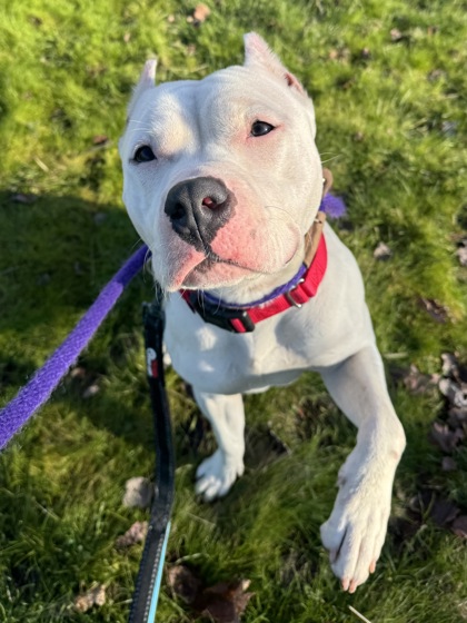 Meet adoptable two year old Dogo Argentino mix who is looking for a loving forever home with a person who will cherish her, make daily positive reinforcement training/socialization/enrichment a priority and always keep her safe.
